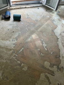 Dépose d'un parquet en point de Hongrie constellé de petits trous...