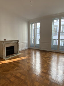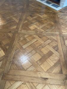 Cela peut être des parquets à lames droites ou au Point de Hongrie. Si les parquets en Point de Hongrie sont souvent posés dans les pièces de réception, les parquet à lames droites, moins couteux, se retrouvent plus souvent dans les circulations et les chambres.